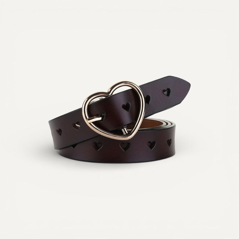 Cette ceinture pour femme se distingue par son cuir, orné de délicats motifs cœur embossés sur toute la longueur. Ces détails subtils ajoutent une note romantique et ludique, tout en conservant une élégance moderne et raffinée.